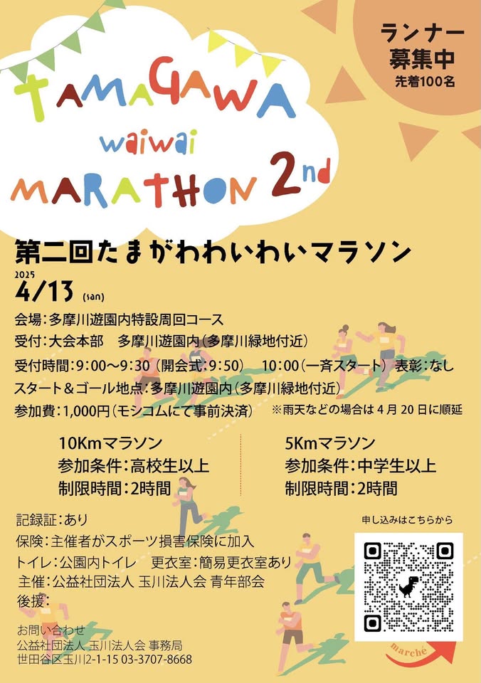 わいわいTAMAGAWAマラソン&マルシェ開催決定!ランナー募集【青年部会】