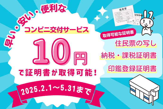 住民票の写し、印鑑登録証明書、特別区民税・都民税 課税・納税証明書の証明書コンビニ交付サービスの手数料を10円に引き下げます。(ただし、サービスのご利用にはマイナンバーカードが必要です)