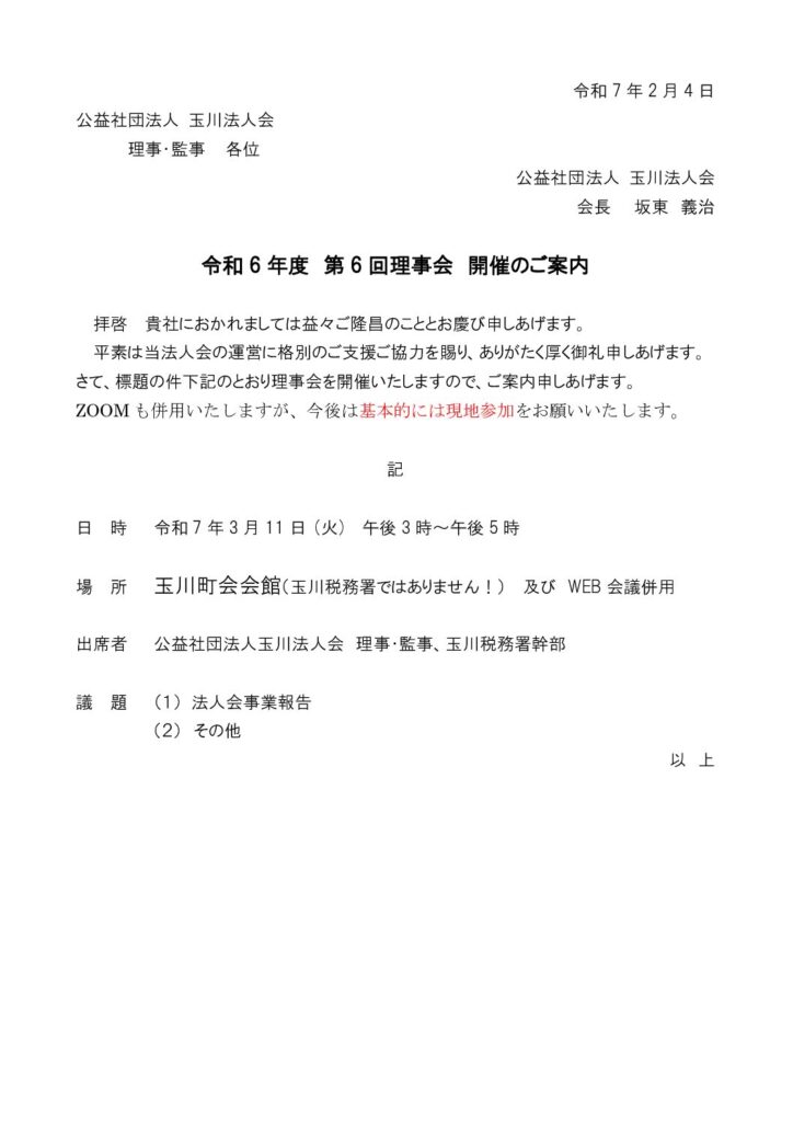 さて、標題の件下記のとおり理事会を開催いたしますので、ご案内申しあげます。
