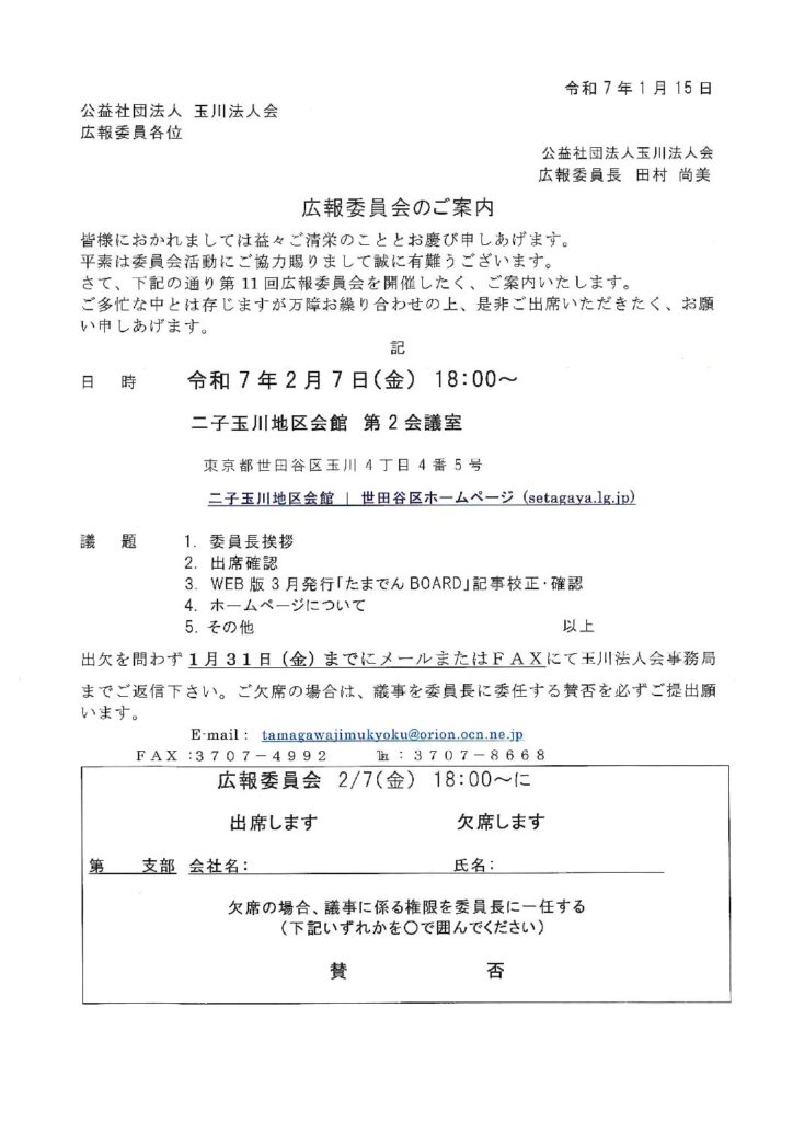 1.委員長挨拶 2.出席確認 3.WEB版3月発行「たまでんBOARD」記事校正・確認 4.ホームページについて 5.その他