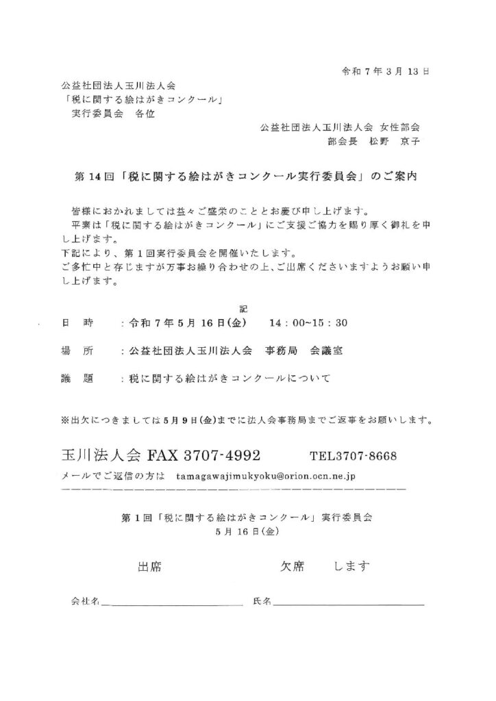 平素は「税に関する絵はがきコンクール」にご支援ご協力を賜り厚く御礼を申し上げます。